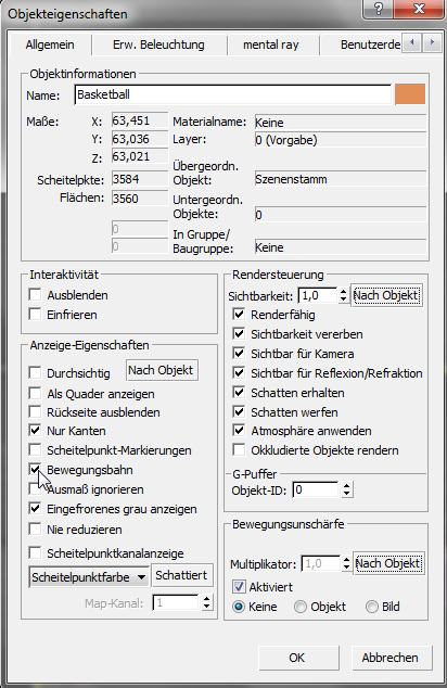 3ds Max öffnet das Dialogfeld "Objekteigenschaften".
