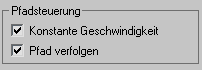 Anmerkung: Standardmäßig bewegt sich die Kamera mit konstanter Geschwindigkeit und blickt immer in Bewegungsrichtung. Dies wird im Rollout "Erweiterte Steuerelemente" unten im Dialogfeld angezeigt, in dem beide Optionen aktiviert sind.