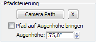 Die Schaltflächenbeschriftung "Pfad auswählen" ändert sich und zeigt den Namen der gewählten Kurve an. Hiermit wird die Kameraposition auf dem Pfad gehalten. Sie wird auch ausgerichtet, um der Richtung des Pfads zu folgen.