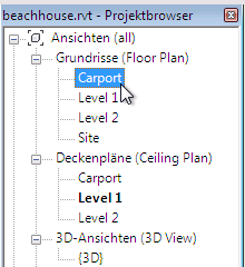 Bearbeiten des Unterstellplatzes mit Revit: