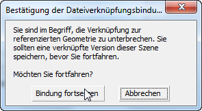 3ds Max zeigt eine Warnmeldung mit dem Hinweis an, dass die Direktverknüpfung aufgehoben wird.