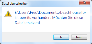 Revit weit Sie darauf hin, dass beachhouse.fbx überschrieben wird.