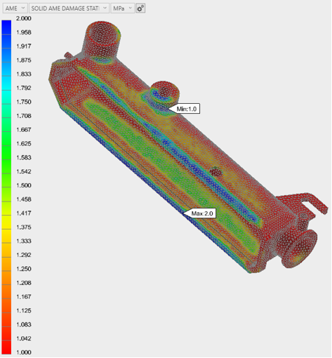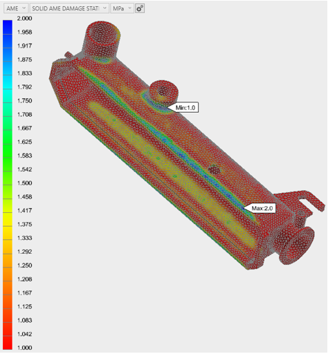 Das Anzeigen von Konturendarstellungen bestimmter Zustandsvariablen ist die beste Methode zur Bewertung der Strukturstabilität des Heizkörpertanks. Im Einzelnen schauen wir uns den Matrix-Fehlerindex und den Schadenszustand an.