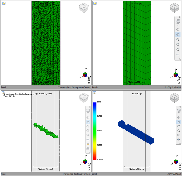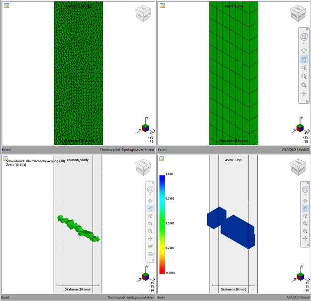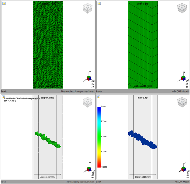 Es ist deutlich erkennbar, dass das Strukturmodell beginnt, die Form der Schweißoberfläche wie im Moldflow-Modell dargestellt anzunehmen, sobald das Netz des Strukturmodells verfeinert wird. Als bewährte Vorgehensweise wird empfohlen, eine Strukturnetzdichte von 1:1 oder feiner bezogen auf das Moldflow-Netz zu wählen.