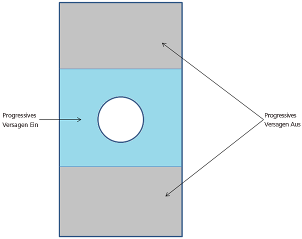 Nehmen Sie als Beispiel den unten gezeigten Coupon mit offener Bohrung. Hier ist es erwünscht, den fortschreitenden Ausfall in den Bereichen weg von der Spannungskonzentration zu deaktivieren, wofür zwei verschiedene Materialien erforderlich sind.