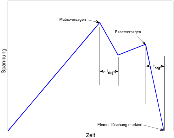 Bei Ausfallsbeginn werden die Materialeigenschaften nicht automatisch auf den nächsten Materialzustand reduziert. Die Materialsteifheit wird anhand der folgenden Gleichung aktualisiert: