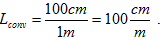 Der Längenkonvertierungsfaktor zum Umwandeln der vorgegebenen Meter-Einheiten in die gewünschten Zentimeter-Einheiten wird berechnet als