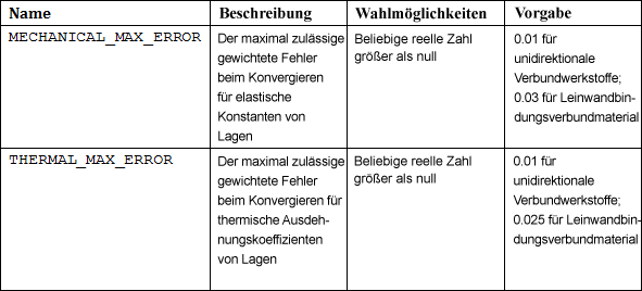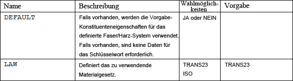 Es muss mindestens ein Schlüsselwort *MATERIAL vorhanden sein. Dieses Schlüsselwort definiert ein neues, zu lösendes Material.