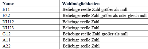 Wenn LAW=ISO, sind die Daten für das Schlüsselwort *MATRIX: