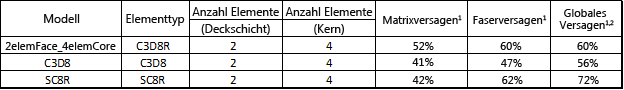 Prognostizieren Sie die fortschreitende Ausfallreaktion der Verbundstruktur mit drei Finite-Element-Modellen.