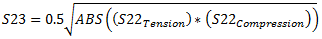 Beim Erstellen eines Materials für die Verwendung mit Helius PFA müssen Sie die Querscherfestigkeit außerhalb der Ebene (S23) bereitstellen. Ein guter ungefährer Wert für den Fall, dass kein experimenteller Wert vorhanden ist, wäre 5.0E + 7 Pascal. Als Schätzung für S23 kann auch die Gleichung unten verwendet werden: