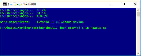 - Stellen Sie sicher, dass die Dateien Tutorial_6_UD_Abaqus_xs.inp und Tutorial_6_UD_Abaqus_xs.hin in Ihrem Arbeitsverzeichnis gespeichert sind.