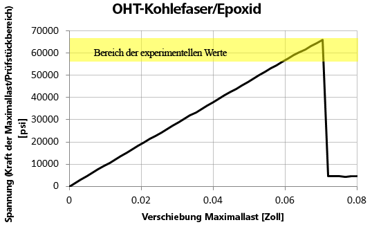Wie in der obigen Darstellung ersichtlich, führt das endgültige Versagen der OHT-Analyse mit den im vorherigen Abschnitt berechneten Bruchenergiewerten zu einer genauen Prognose des endgültigen Versagens des OHT-Prüfstücks.