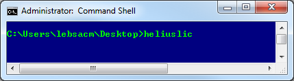 Um dieses Werkzeug zu öffnen, führen Sie die Befehlsshell aus (vorheriger Abschnitt), und führen Sie den Befehl heliuslic wie im folgenden Beispiel gezeigt aus: