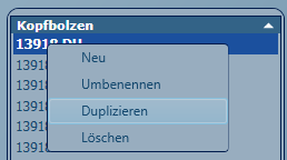 - Klicken Sie mit der rechten Maustaste auf einen vorhandenen Kopfbolzennamen.