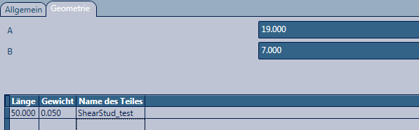 - Navigieren Sie zur Registerkarte Geometrie und definieren Sie die Geometrie des neuen Kopfbolzens: