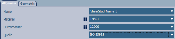 Anmerkung: Sie müssen gültige Parameter auswählen und die Einstellungen auf der Registerkarte Allgemein vornehmen, um den neuen Kopfbolzen erstellen und die Einstellungen speichern zu können.