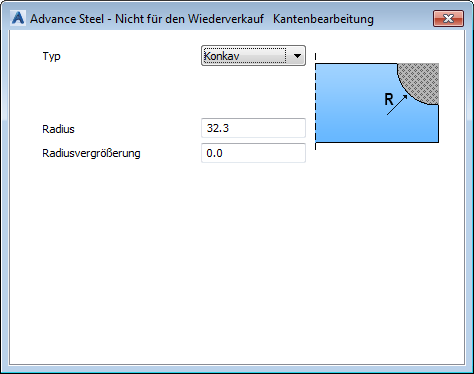 | Radius | Definiert den Radius der konvexen oder konkaven Ausrundung. |
