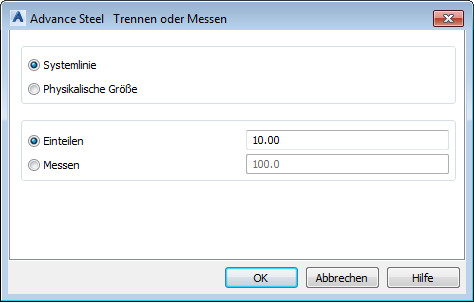 Dialogfeld Trennen oder Messen