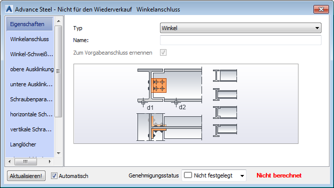 | Schraubentyp | Definiert den Schraubentyp. Der Schraubentyp wird aus einer Dropdown-Liste ausgewählt. |