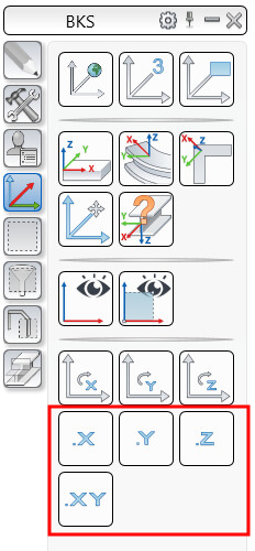 Die Befehle X Filter, Y Filter, Z Filter und XY Filter sind in der Werkzeugpalette BKS verfügbar.