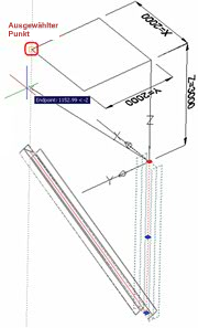 - Wählen Sie im Arbeitsbereich einen Punkt mit den Koordinaten 4000, 5000, -3000 relativ zur Oberkante des Trägers aus. In diesem Fall wird die Oberseite des Trägers um 4000 Einheiten in Richtung der X-Achse verschoben.