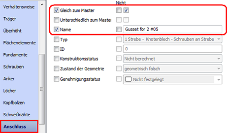 Der Filter verfügt über eine Suchfunktion, mit der Sie nur den Master-Anschluss, nur die abhängigen Anschlüsse oder beide suchen können. Dieser Filter markiert nur das Anschlussobjekt.