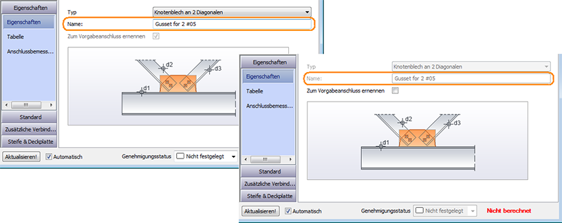 Wenn Sie die Anschlüsse trennen, wird der abhängige Anschluss erstellt, ist aber faktisch unabhängig. Wenn Sie die Anschlüsse nicht trennen, wird der abhängige Anschluss erstellt. Er wird aber markiert, da der Anschluss sich vom Master-Anschluss unterscheidet.
