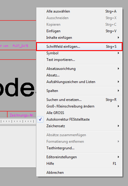 - Klicken Sie mit der rechten Maustaste in das Textfeld und wählen Sie Feld einfügen aus dem Menü.