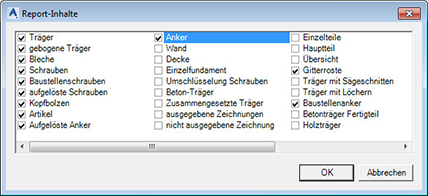 Um Ankerschrauben in Listen zu führen, ist es erforderlich, sie zu den Berichtsinhalten hinzuzufügen, die von der Vorlage verwendet werden.