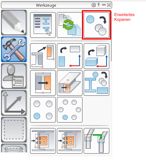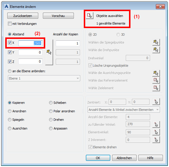 Diese Funktion kann verwendet werden, um das Schweißnahtobjekt zu kopieren. In diesem Fall ist es nicht erforderlich, die Option mit Verbindung auszuwählen. Die beiden Optionen in dieser Kopierfunktion sind: