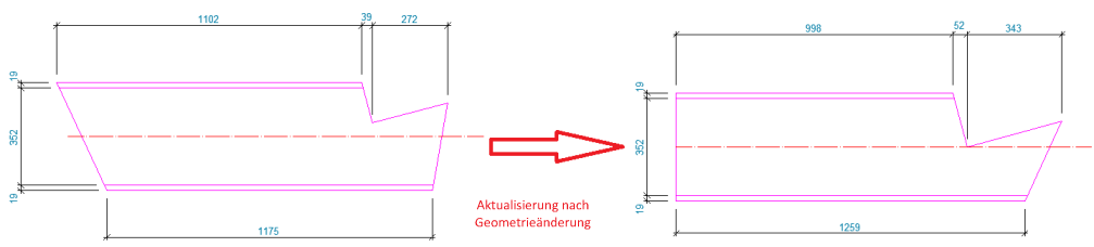 Wenn einer der beiden Punkte nicht korrekt ausgewählt ist, wird er während der Aktualisierung entfernt, ohne dass sich dies auf die anderen Maßpunkte in dieser Kette auswirkt.