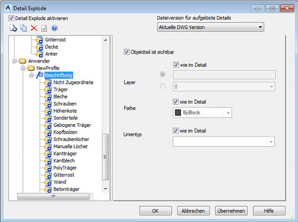 . Das Dialogfeld Detail Explode wird geöffnet.