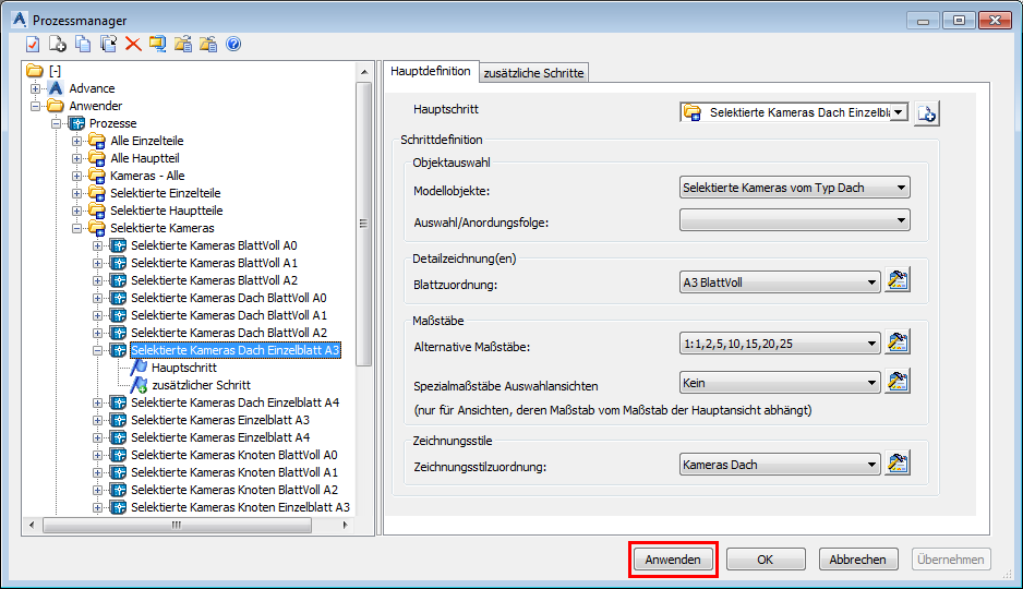 Erstellen Sie eine Detailzeichnung mithilfe eines Prozesses (z. B. Selektierte Kameras BlattVoll ANSIE-E).