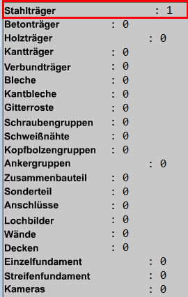 - Registerkarte Objekte: Wählen Sie Stahlträger (wenn es sich um einen Träger handelt, nach dem gesucht werden soll).