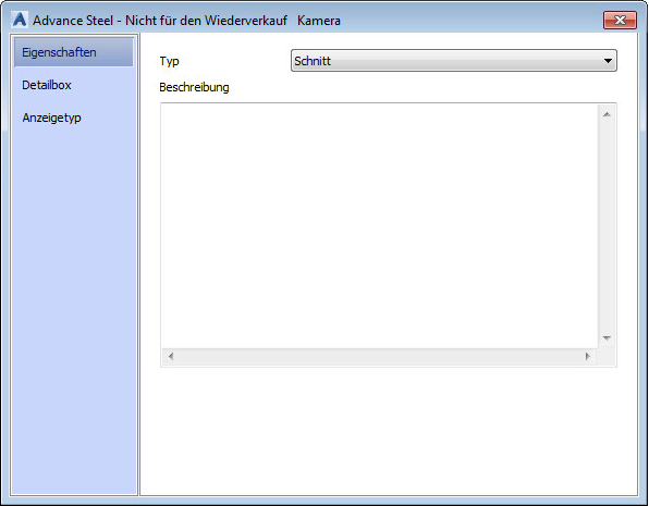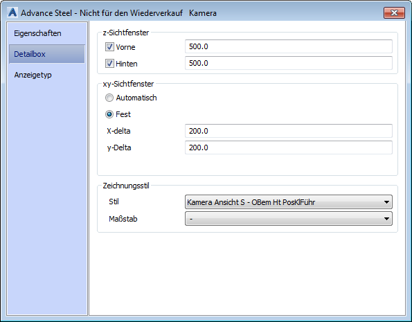 Ihre Detailzeichnung wird unter Verwendung des im Dialogfeld Kamera festgelegten Zeichnungsstils (3D View - Model - Labels) erstellt, nicht mit dem Stil in der Prozessdetail-Zuordnung (Elevation View - Line).