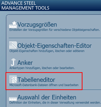 - Verwenden Sie den Tabelleneditor, um die Datenbank AstorProfiles zu öffnen, und gehen Sie wie folgt vor: