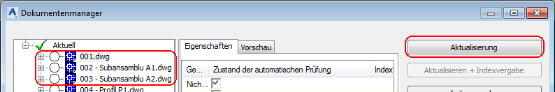In diesem Fall wird der Status der Details im Dokumentenmanager nur dann aktualisiert, wenn Änderungen im Modell vorgenommen wurden.