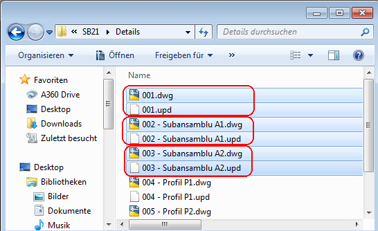 Vor einer Registrierung müssen Sie die .dwg- und .upd-Dateien in den Ordner Details kopieren, in dem die Details registriert werden.