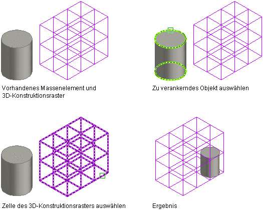 Gehen Sie wie folgt vor, um Volumenanker hinzuzufügen. Sie können Volumenanker zu Objekten hinzufügen, um diese mit Volumenrastern zu verbinden.