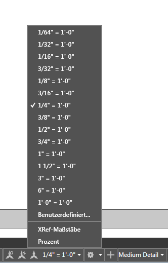 Der Beschriftungsmaßstab ist eine Einstellung, die mit der Registerkarte Modell und den Ansichtsfenstern des Papierbereichs verbunden ist. Er wird auch zusammen mit Modellansichten gespeichert. Der aktuelle Beschriftungsmaßstab wird durch die Systemvariable CANNOSCALE bestimmt. Modellansichten und Ansichtsfenstern des Papierbereichs können verschiedene Beschriftungsmaßstäbe zugewiesen werden.