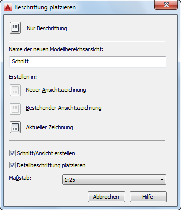 - Vergewissern Sie sich, dass Schnitt/Ansicht erstellen ausgewählt ist.