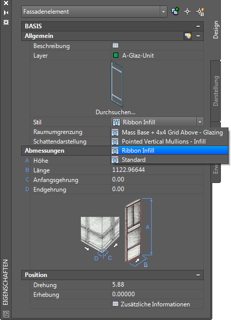 Gehen Sie wie folgt vor, um einen anderen Stil für das Fassadenelement zu wählen.