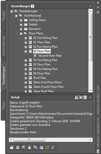 | Benennen der neuen Ansicht | Geben Sie einen Namen ein. Bei Verwendung der Projektnummer als Präfix für Projektdateinamen ist es nicht nötig, hier ein Präfix einzugeben. Der vollständige Name mit Präfix wird unter Dateiname angezeigt. |