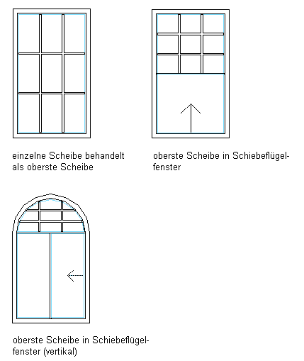 | nur zum obersten Flügel | Wählen Sie unter Fensterfläche die Option Oben. Oben gilt auch für einfache Fensterflügel. |