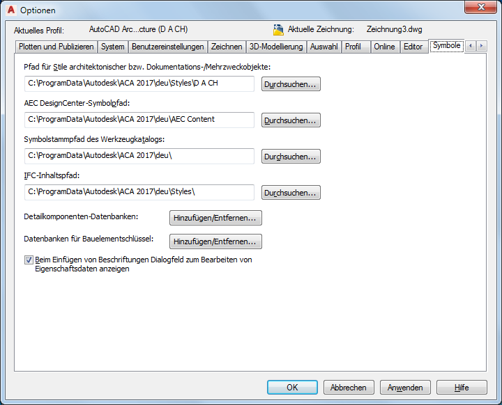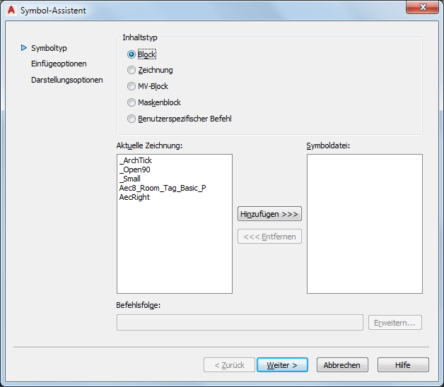 Alle symbolbasierten Inhalte mit der Ausnahme von Führungen, Beschriftungen und Detailbeschriftungen können mit dem Symbol-Assistenten erstellt und als AEC-Symbol gespeichert werden, sodass auf die Symbole entweder über die Registerkarte Symbole im DesignCenter oder ein palettenbasiertes Werkzeug zugegriffen werden kann.