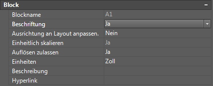 - Wählen Sie auf der Eigenschaftenpalette unter Block für Beschriftung Ja.