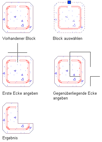 Subtrahieren eines Teils eines Blocks durch Angeben der Ecken eines Rechtecks