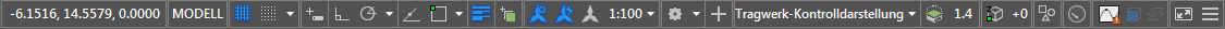 Die Statusleiste zeigt die Cursor-Position, Zeichnungswerkzeuge und Werkzeuge an, die sich auf die Zeichnungsumgebung auswirken.