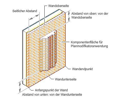| Festlegen der Anfangshöhe des Wandmodifikators | Geben Sie einen Wert für den Abstand von unten ein, und legen Sie fest, ab welcher Position der Abstand gemessen wird (Wand oben, Basishöhe, Ausrichtungslinie oder Wand unten). |